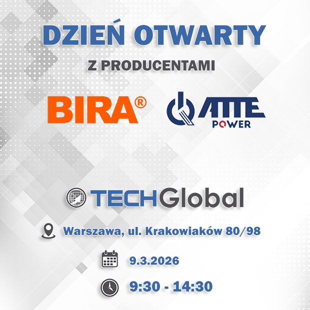 Termin: 09.03.2026Godzina: 9:30 – 14:30Miejsce: TECHGLOBAL, Warszawa, ul. Krakowiaków 80/98 W programie: BIRA – zwory elektromagnetyczne, elektrozaczepy, zamki szufladowe• O firmie BIRA• Prezentacja najnowszych produktów: zwory elektromagnetyczne, elektrozaczepy• Technologia i jakość• Zastosowania ATTE Power – systemy transmisji danych oraz zasilania dla CCTV IP• Nowości 2026: Nowe obudowy, akcesoria montażowe i przetwornice.• Zasilanie buforowe: Systemy AUPS/IPUPS, […]